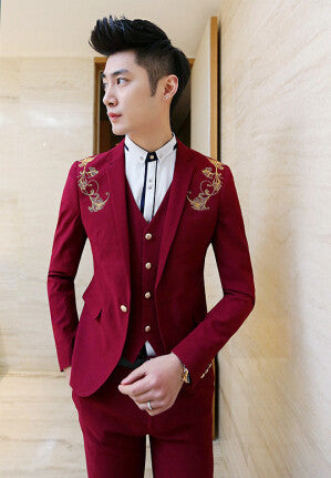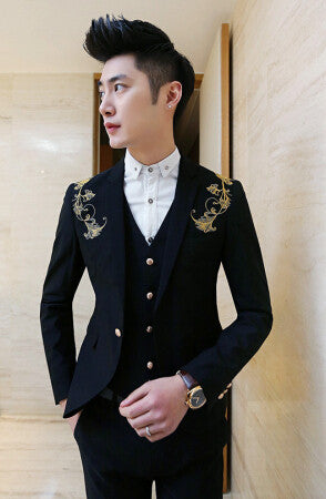 Gender: MenItem Type: SuitsFront Style: FlatModel Number: A064Pant Closure Type: Zipper FlyMaterial: Cotton,PolyesterClosure Type: Single BreastedFit Type: StraightClothing Length: Regular